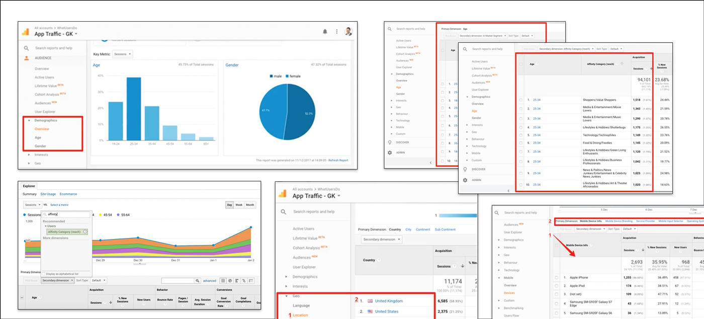 Access to the GA dashboard of the current site allowed me to gather any useful demographic data to zero in on building the personas we want to target. Specific areas included: